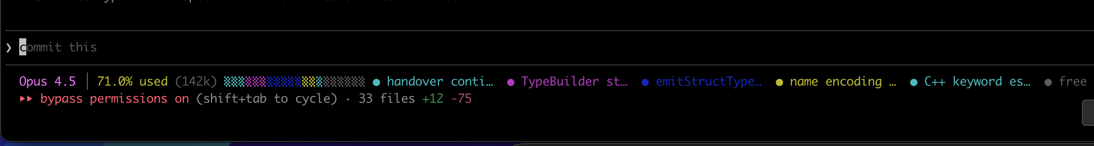 - Statusline: shows context usage % and topic segmentation